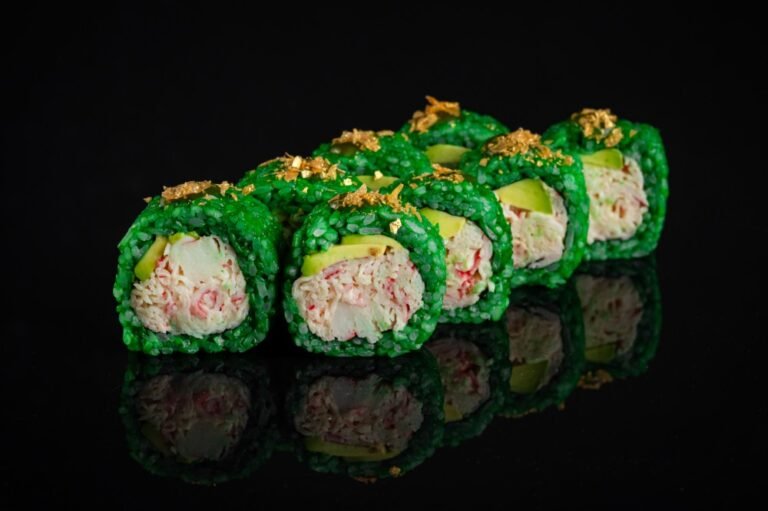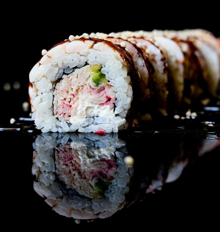 Краб сніжний, Тигрова креветка, авокадо, Філадельфія, листя Норі, рис.