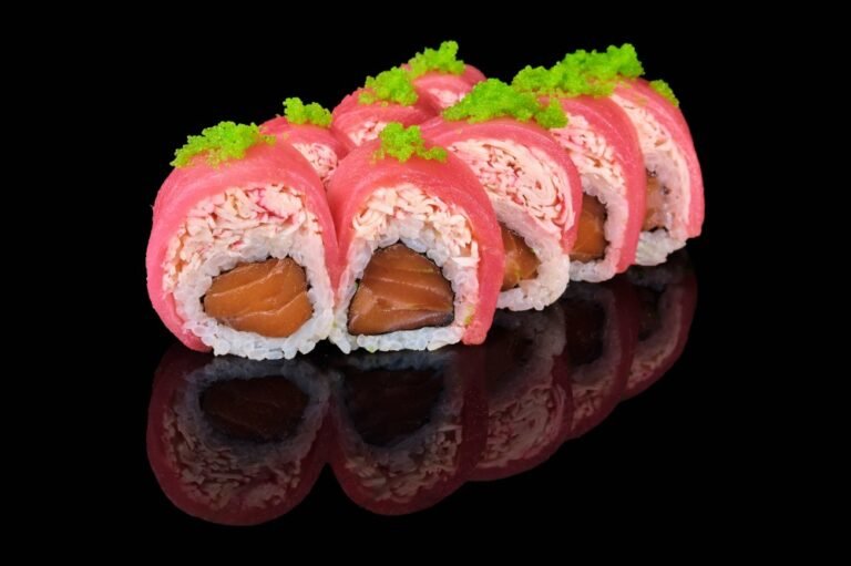 Лосось, тунець, авокадо, ікра Масаго чорна, ікра Червона.