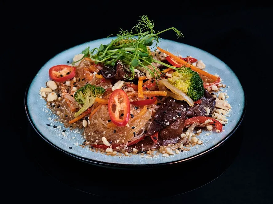 Локшина Фунчоза, нiжна курочка, овочі, спеції, арахіс